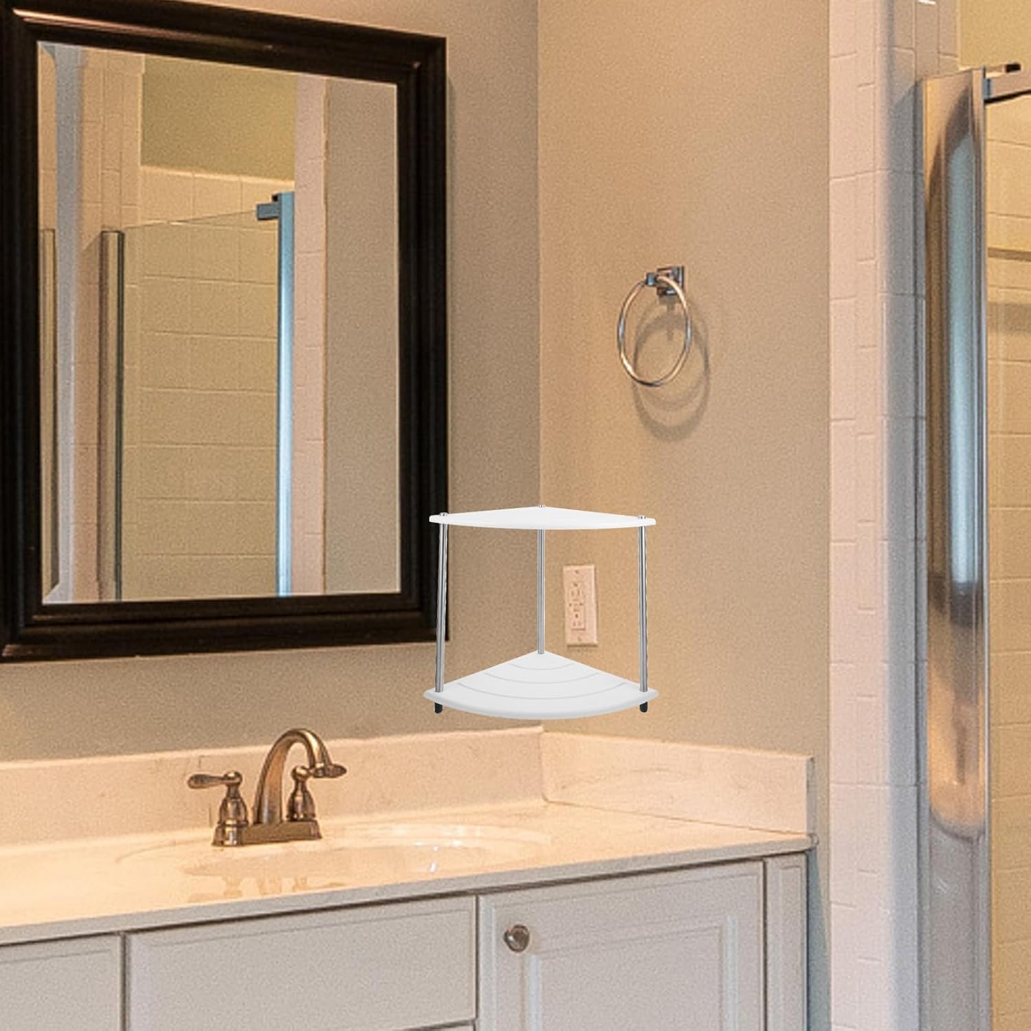 Package List 1 x countertop organizer Features -Easy to clean: its smooth surface makes it easy to clean and maintain. This countertop organizer is convenient. organizer for vanity -Versatile: this countertop organizer can be used to store various items such as toiletries, cosmetics, office supplies countertop organizer for cosmetics. -Sturdy and : made of stable diatom ooze, metal material, this rack is sturdy and , ensuring use. -Size:29.00X25.00X25.00cm/11.40X9.82X9.82in -Space-saving: its unique triangular corner design maximizes space utilization, providing more storage space countertop corner shelf. -Product Info:Bathroom storage rack -Material:Diatom ooze, metal -Easy to install: this countertop organizer can be easily installed on any desktop, making it convenient to use countertop cosmetics storage rack. -Color:WhiteGoods Descriptioncountertop organizer Good workmanship, reasonable double-layers design, can easily help you to store your sundries like toiletries, cosmetics and dishes, make your place more tidy and bring your home a new look.countertop cosmetics storage rack This is a practical and sturdy sundry shelf, mainly in adoption of diatom ooze, metal material, convenient and can serve you for a long period