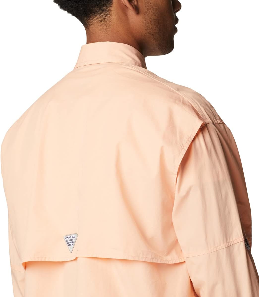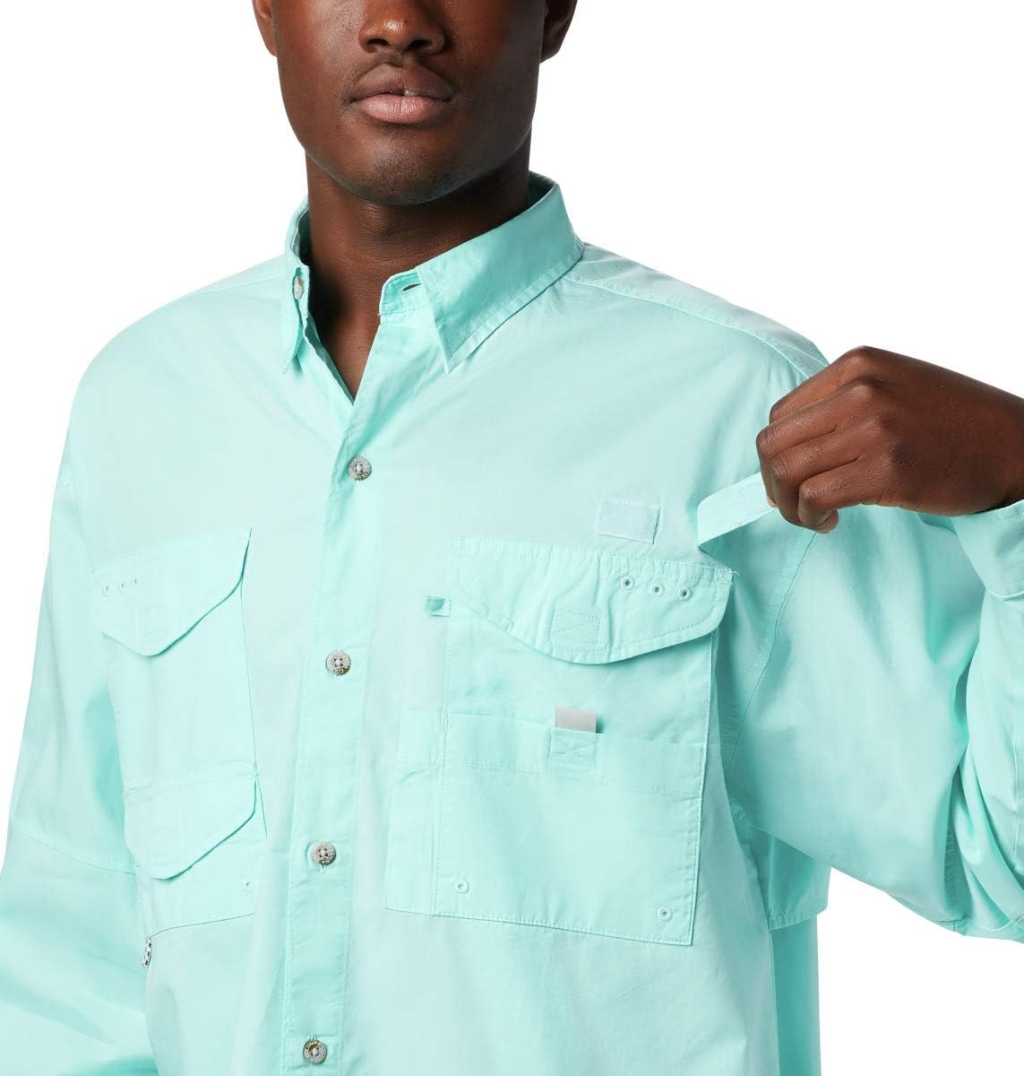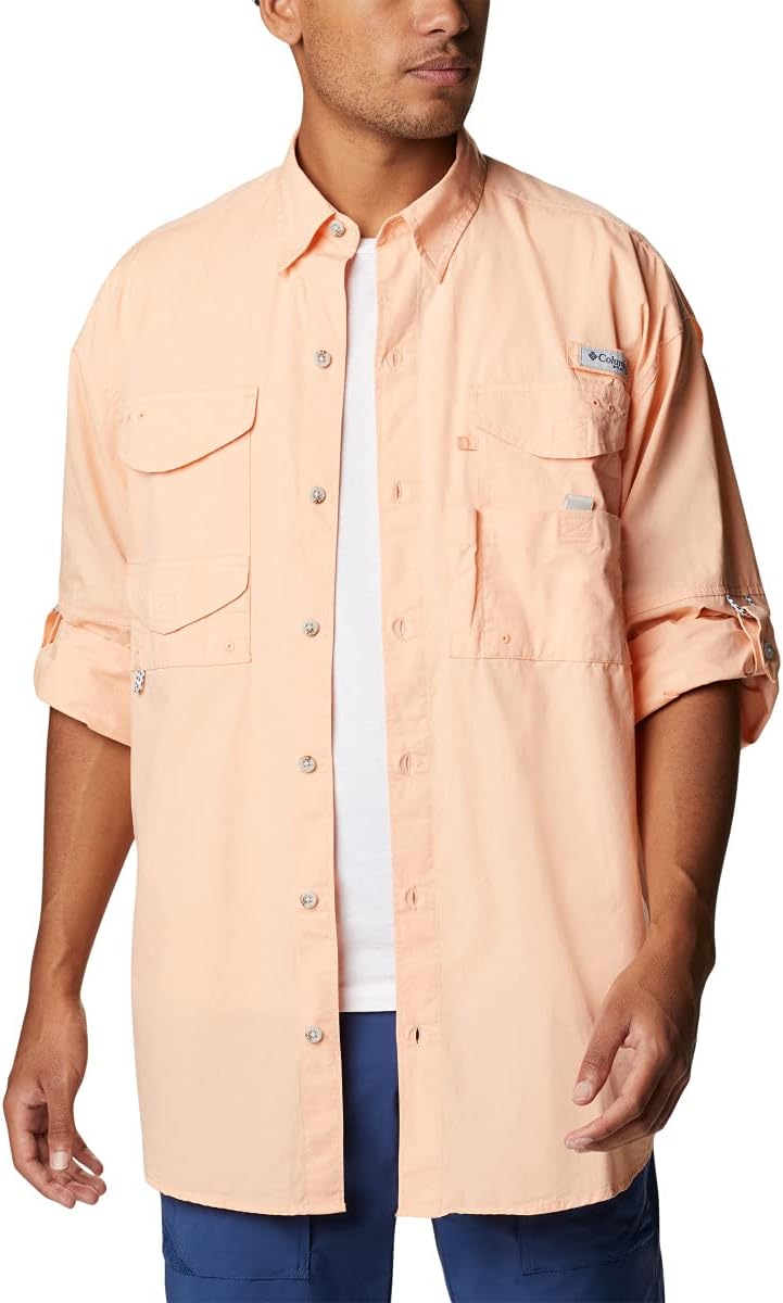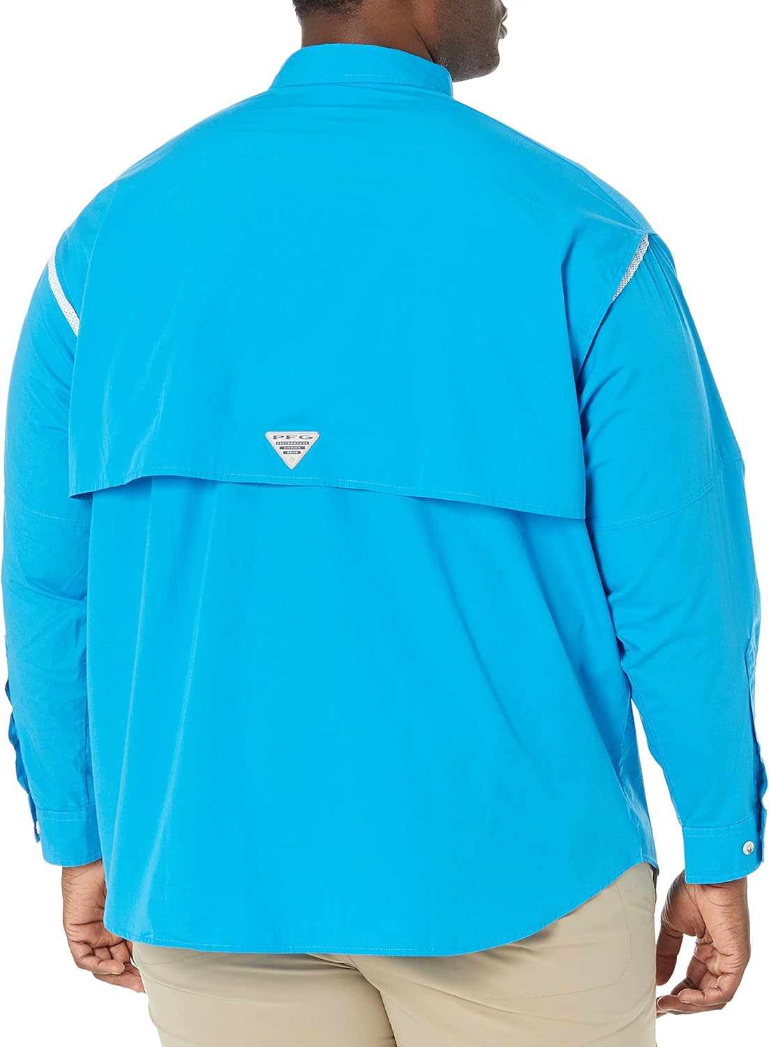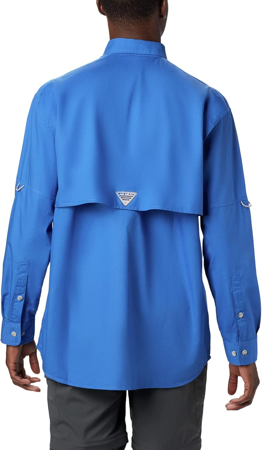 Designed to meet the needs of active anglers, this shirt is made of a soft 100% cotton poplin weave in an easy relaxed fit. It has roll-up sleeves with tab holders, plenty of pockets, and a rod holder to help free up your hands while on water. A mesh-lined vented back keeps things breezy and comfortable, while a utility loop keeps gear handy. Columbia offers this garment in multiple colors and sizes. Relaxed Fit. To ensure the size you choose is right, utilize our sizing chart and the following measurement instructions: For the sleeves, start at the center back of your neck and measure across the shoulder and down to the sleeve. If you come up with a partial number, round up to the next even number. For the chest, measure at the fullest part of the chest, under the armpits, and over the shoulder blades, keeping the tape measure firm and level.