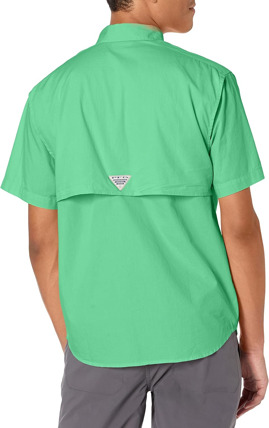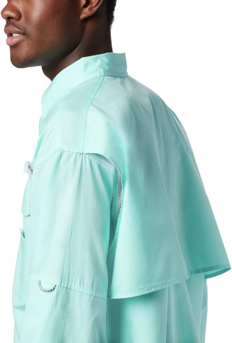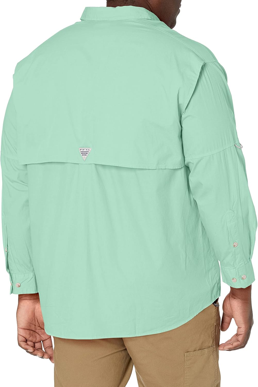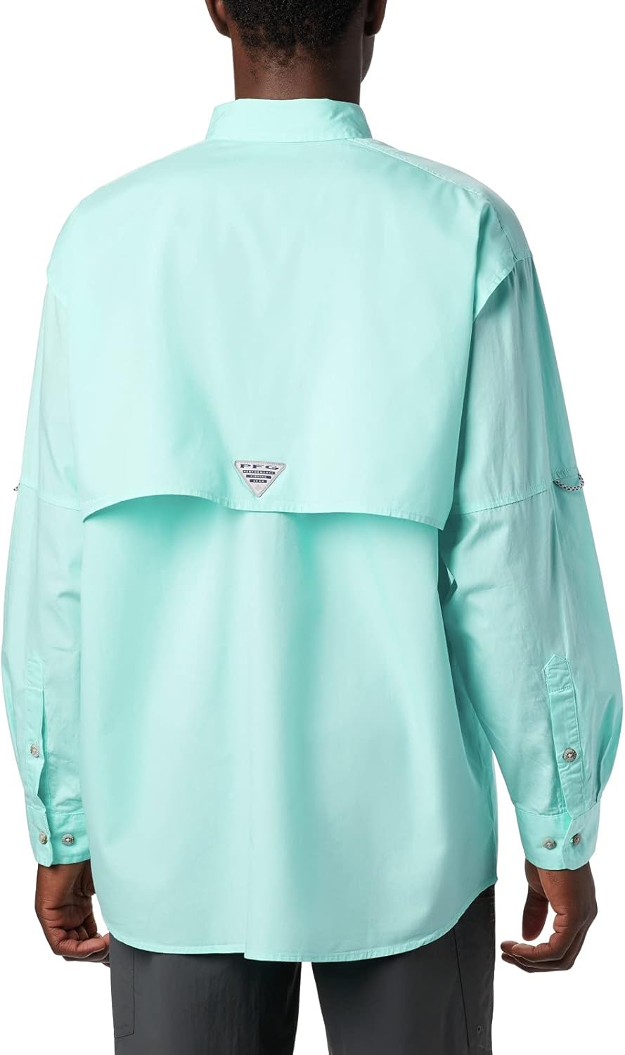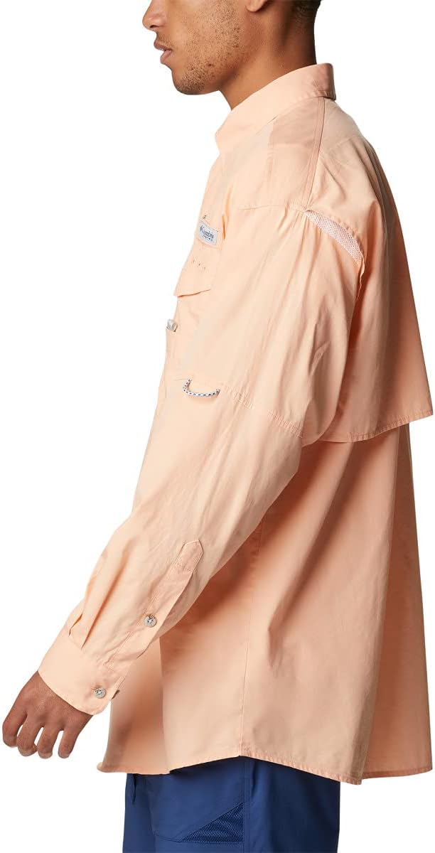 Designed to meet the needs of active anglers, this shirt is made of a soft 100% cotton poplin weave in an easy relaxed fit. It has roll-up sleeves with tab holders, plenty of pockets, and a rod holder to help free up your hands while on water. A mesh-lined vented back keeps things breezy and comfortable, while a utility loop keeps gear handy. Columbia offers this garment in multiple colors and sizes. Relaxed Fit. To ensure the size you choose is right, utilize our sizing chart and the following measurement instructions: For the sleeves, start at the center back of your neck and measure across the shoulder and down to the sleeve. If you come up with a partial number, round up to the next even number. For the chest, measure at the fullest part of the chest, under the armpits, and over the shoulder blades, keeping the tape measure firm and level.
